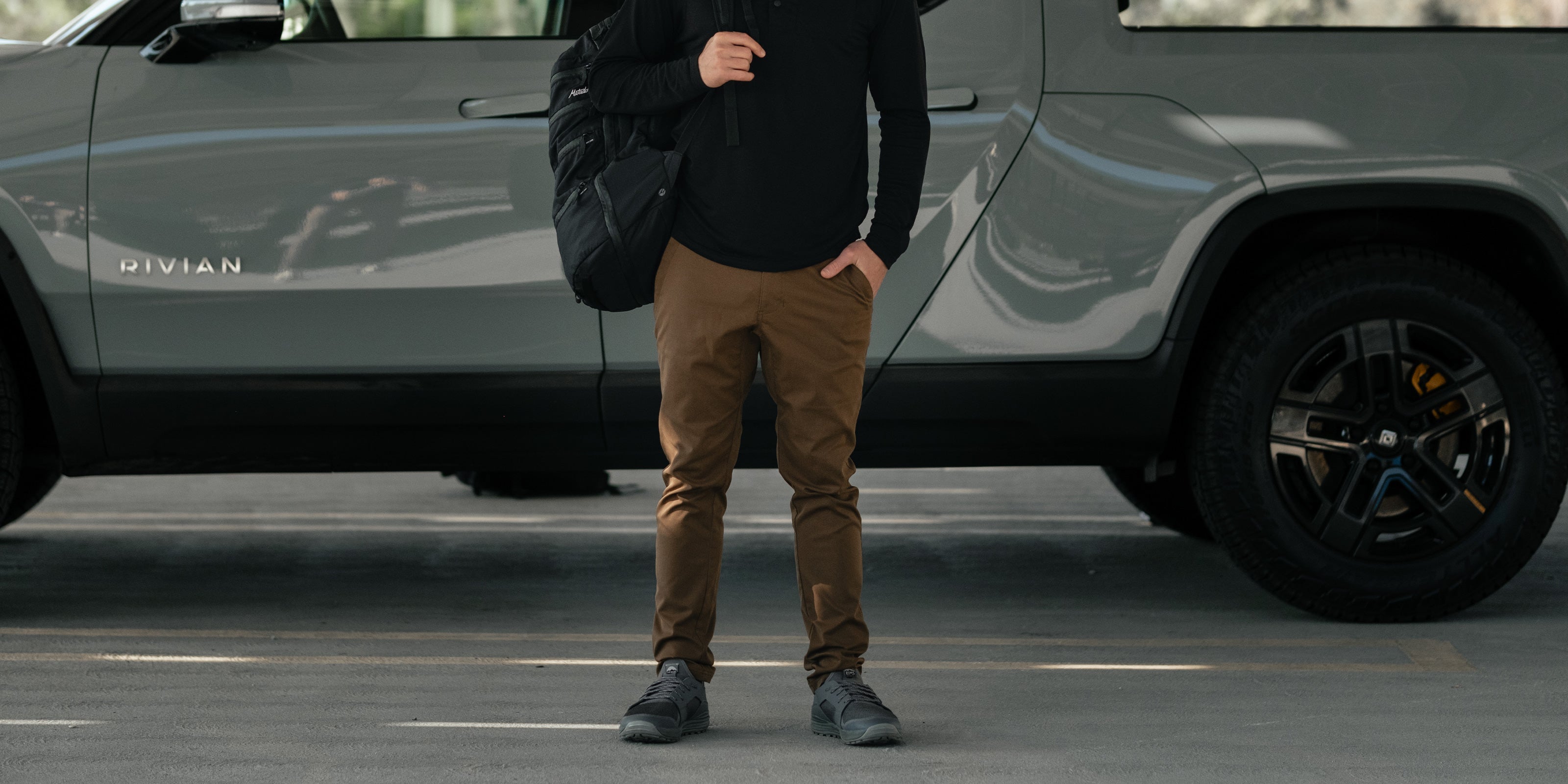 Crafted from a unique, non-shiny poly that’s wrinkle-, stain-, and water-resistant and half the weight of typical chinos, with extra stretch.